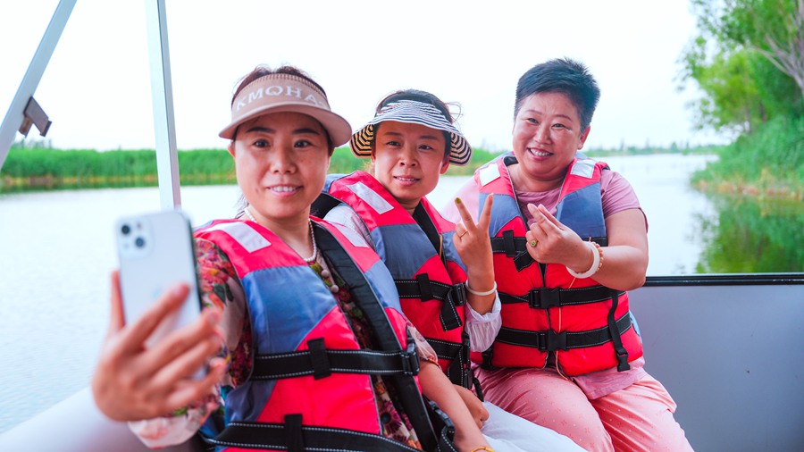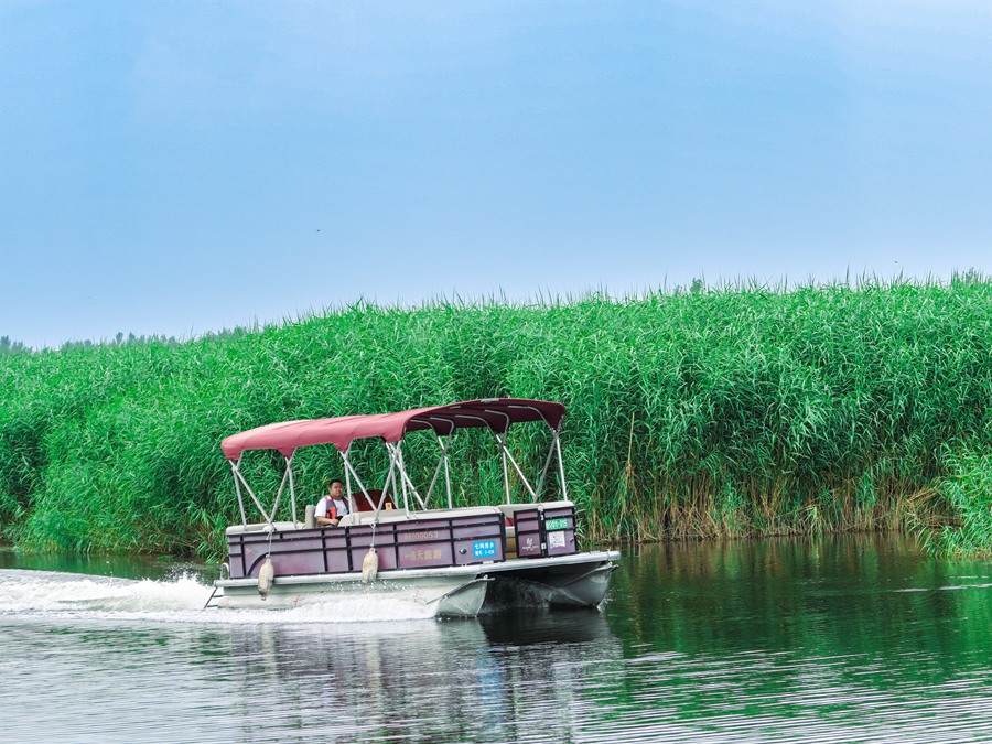 游客乘船在淀上游玩。雄安媒体中心董嘉琛 摄