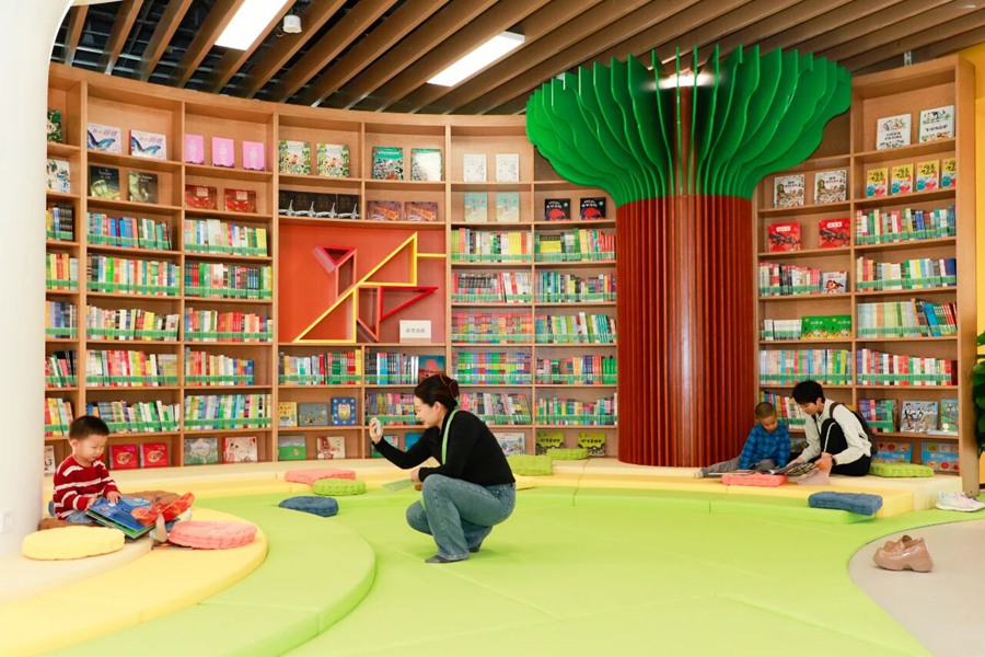 幼儿阅览区是专为幼儿开辟的专属空间,提供各类优秀的、适合低龄儿童启蒙的图书资料。各个角落配备柔软的防摔地垫,所有书桌、椅角均采用圆角设计,还专设“亲子阅读书桌”为家长和孩子提供了舒适的共享空间,贴心地配备了儿童专用饮水设备,并设有无障碍通用儿童卫生间。