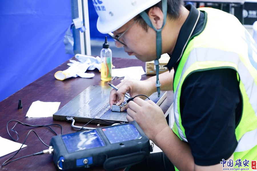 竞赛分为技能操作和理论考核两部分,共设置了回弹法检测混凝土抗压强度、低应变法检测基桩完整性、钢结构焊缝超声检测等多个实操项目,吸引了来自新区15家检测机构的77名技术骨干同台竞技。