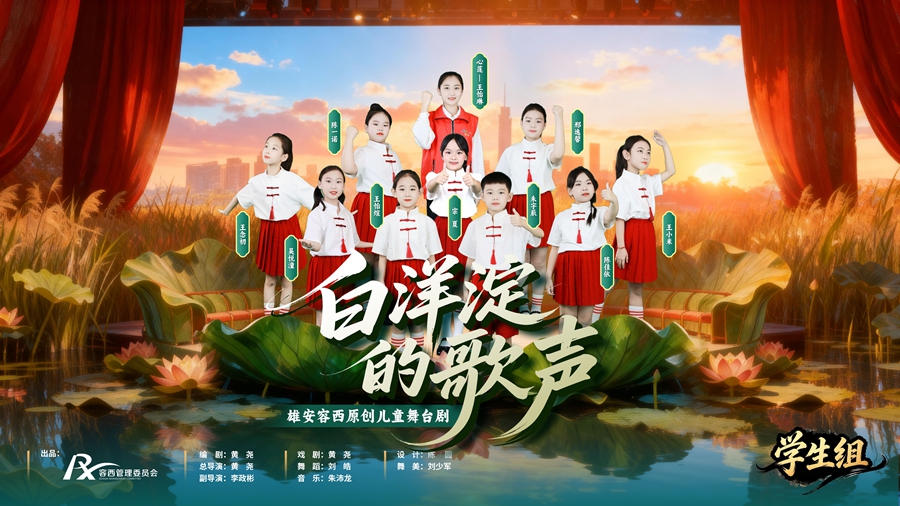 今年,容西管委会深耕本土文化,以“用童真视角讲好生态故事”为核心主题,深度融合雄安独特的水乡风情与厚重的红色历史文化资源,精心创编排演了原创儿童舞台剧《白洋淀的歌声》。这部作品以容西片区回迁子女为演员,创新采用拟人化艺术手法,生动再现白洋淀治理前后的生态巨变,让童真与理想在舞台上碰撞出璀璨火花,将于明日首映。(容西管委会供稿)