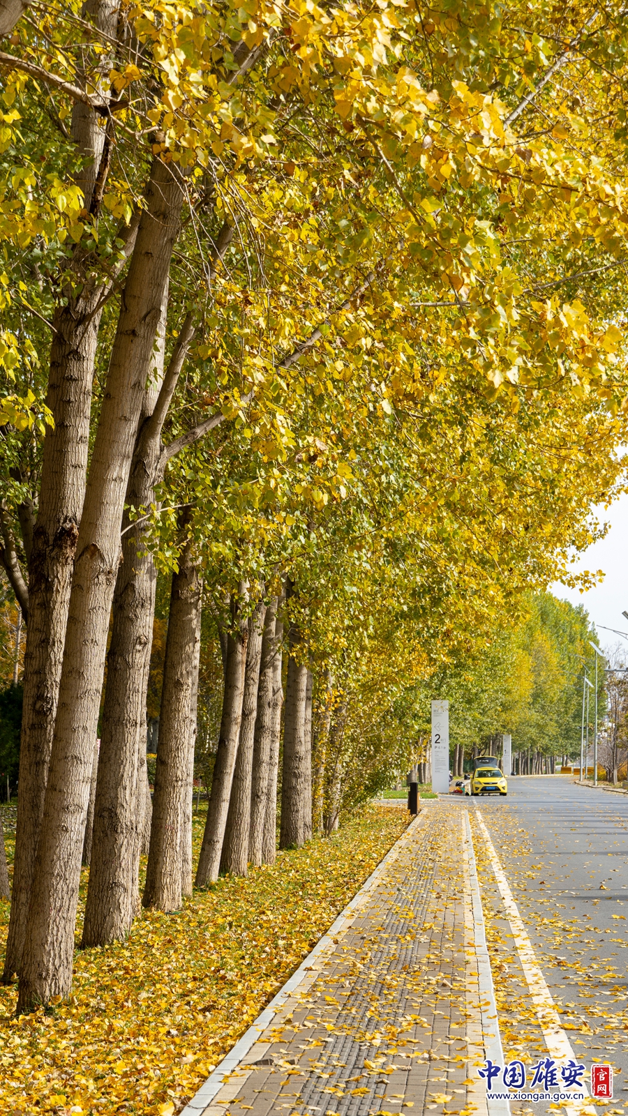初冬的雄安街头,两边的树叶金黄灿烂。中国雄安官网高盟 摄