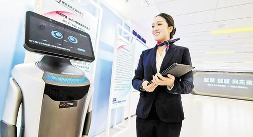 近日,雄安机器人大厦内,工作人员向参观者展示机器人产品。记者刘光昱 摄