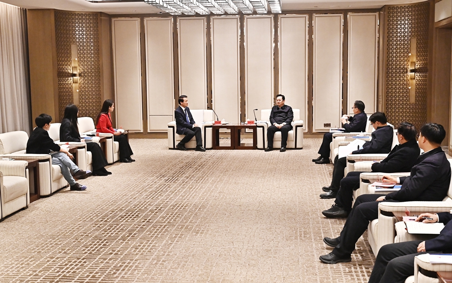 12月9日,在2025健康传播生态共创大会召开前夕,省委常委,雄安新区党工委书记、管委会主任张国华与中国工程院院士,中国医师协会副会长、健康传播工作委员会主任委员、北京大学国际癌症研究院院长詹启敏一行举行工作座谈。