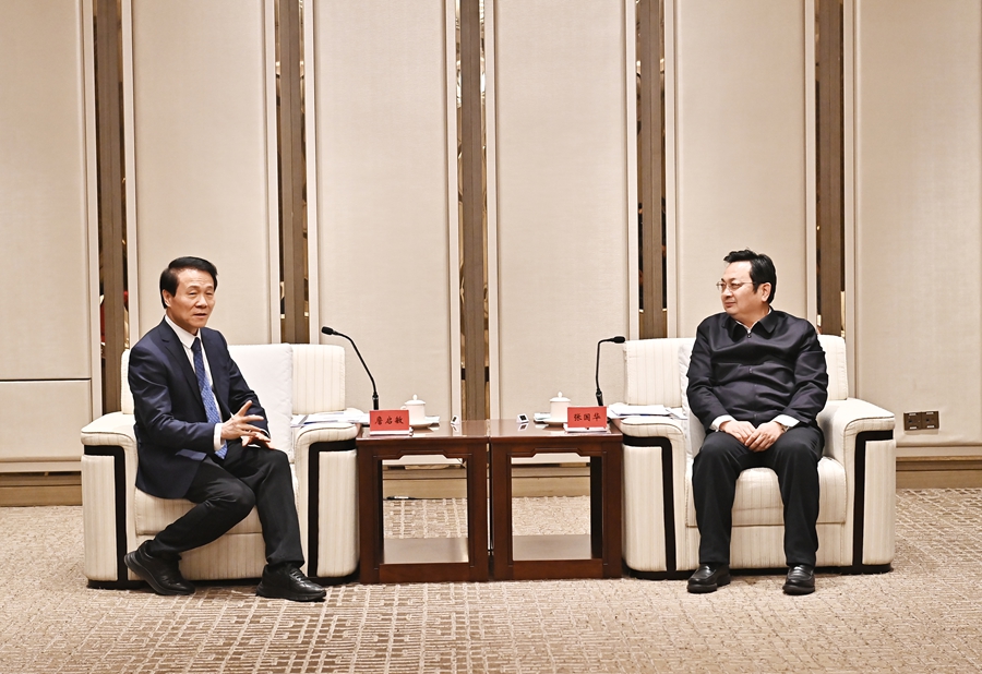 张国华与中国工程院院士詹启敏一行举行工作座谈。刘向阳 摄