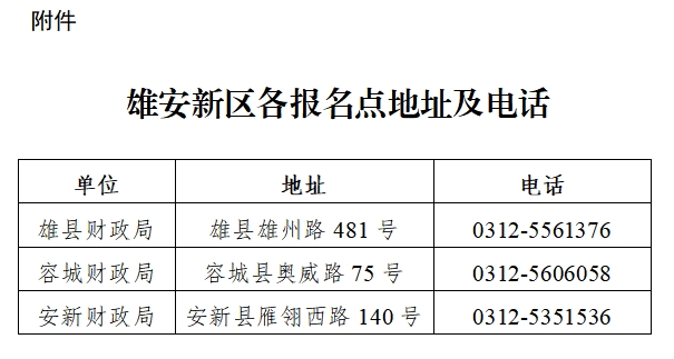 附件:雄安新区各报名点地址及电话