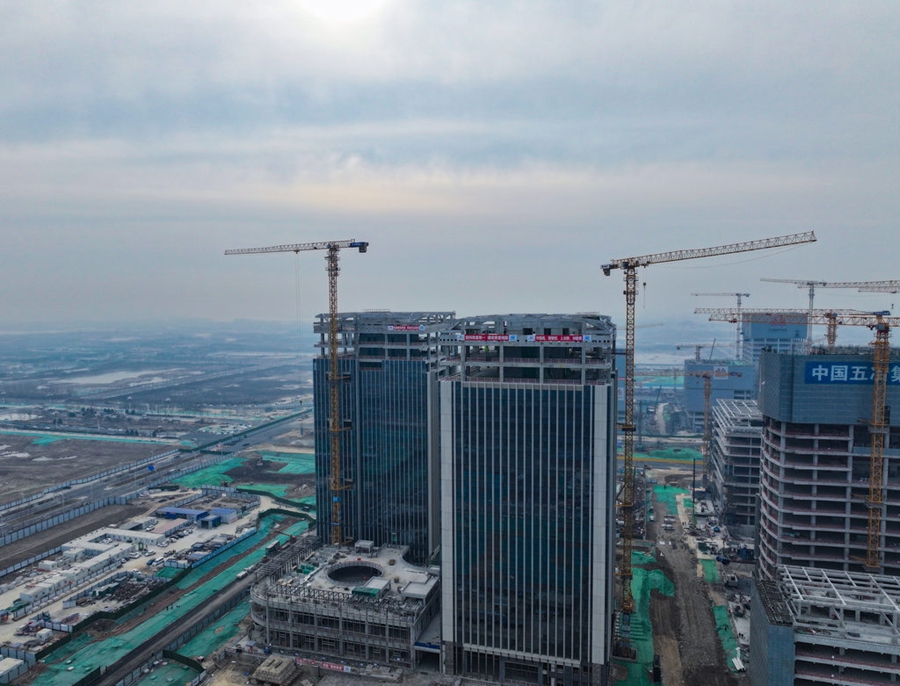1月4日,无人机航拍的雄安新区启动区财富大厦项目。该项目未来将成为雄安承接北京金融机构疏解、服务京雄金融资源联动的重要载体。河北日报见习记者李畅 摄