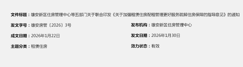 雄安新区住房管理中心等五部门关于联合印发《关于加强租赁住房配租管理更好服务疏解住房保障的指导意见》的通知