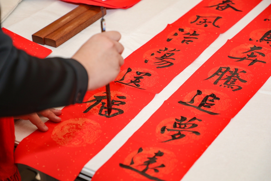 本次活动还在启动区财富大厦项目部、大河片区复兴社区党群服务中心设立分会场。书法家们现场为一线的建设者和社区居民书写春联、送上祝福,推动文化惠民服务精准直达基层“最后一公里”。