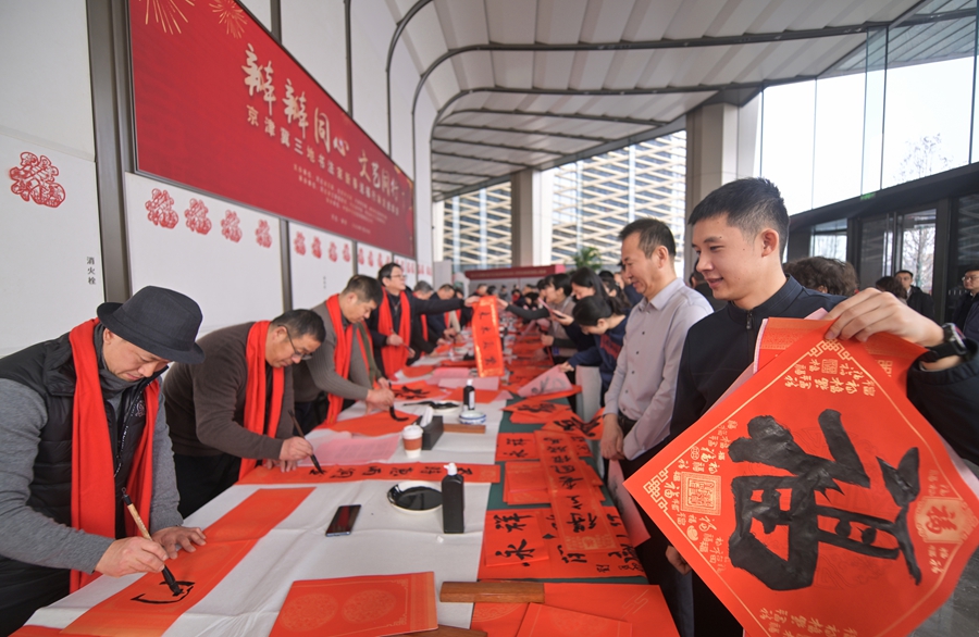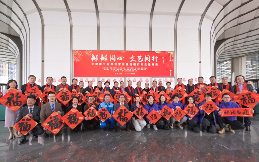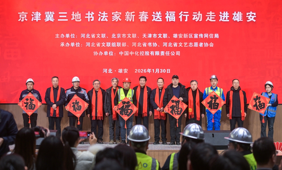 中国雄安官网1月30日电 为丰富广大干部群众精神文化生活,营造欢乐祥和、喜庆热烈的节日氛围,1月30日,由河北省文联、北京市文联、天津市文联与雄安新区宣传网信局主办,中国中化协办的“瓣瓣同心 文艺同行”——京津冀三地艺术家新春送福行动和文艺慰问演出在雄安新区中国中化大厦举办。三地书协主席齐聚雄安,为疏解央企干部职工、建设者及居民送上真挚的新春祝福。