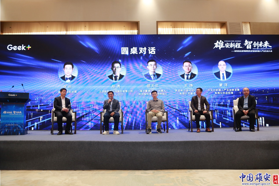 在圆桌对话环节,企业和机构代表展开深入交流,共同探讨雄安新区如何通过技术融合、场景共创与资源整合,加速具身智能机器人在各行业的规模化落地与应用创新。