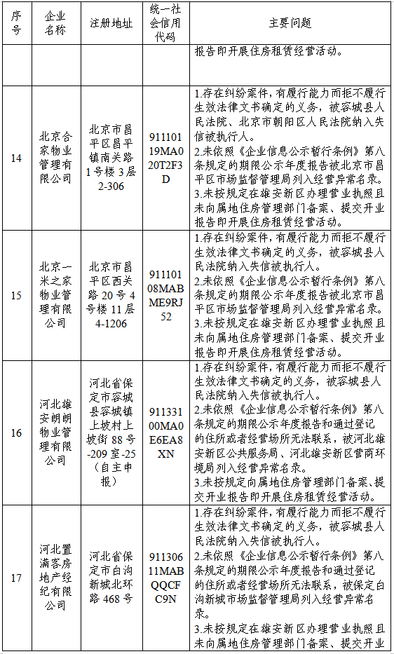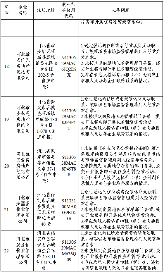 现将雄安新区住房租赁企业、房地产经纪企业风险提示名单公布如下。请广大市民在租房时仔细辨别风险,选择依法合规企业。
