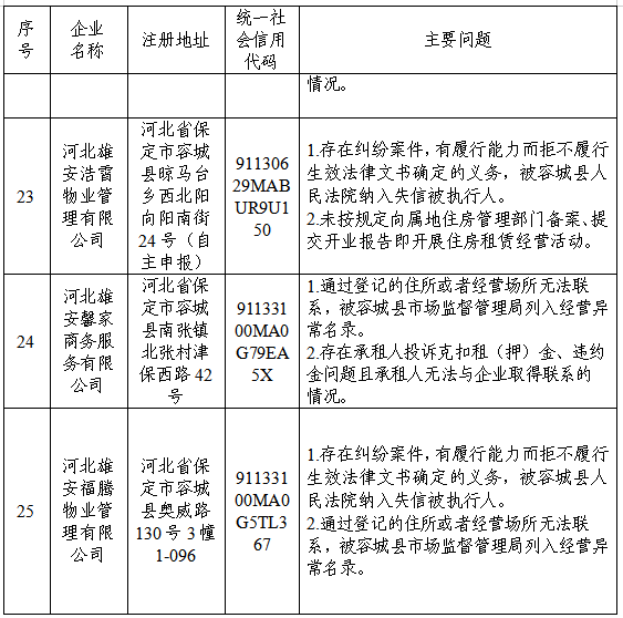 被列入“风险名单”的企业,在完成整改后,可联系雄安新区住房管理中心申请移出“风险名单”。(联系电话:0312-5620878)