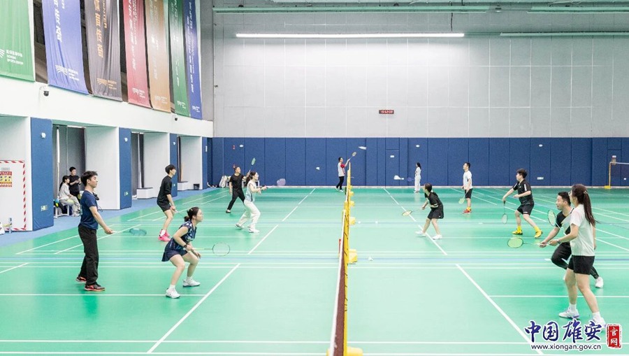 雄安体育中心内,群众畅享羽毛球运动乐趣。中国雄安官网发