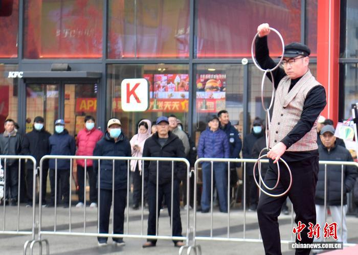 2月26日,河北雄安新区雄安奥特莱斯广场“非遗剧场”活动现场,魔术演员正在表演。据了解,正月初一到正月十五期间,每天下午会有魔术、杂技、民乐、国潮等多种类型的表演轮番登场,吸引游客“打卡”。中新社记者韩冰 摄