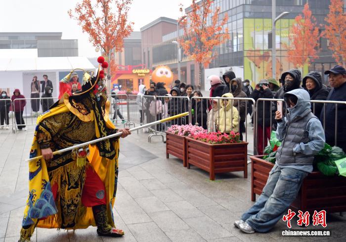 2月26日,河北雄安新区雄安奥特莱斯广场“非遗剧场”活动现场,变脸演员正在与观众互动。据了解,正月初一到正月十五期间,每天下午会有魔术、杂技、民乐、国潮等多种类型的表演轮番登场,吸引游客“打卡”。中新社记者韩冰 摄