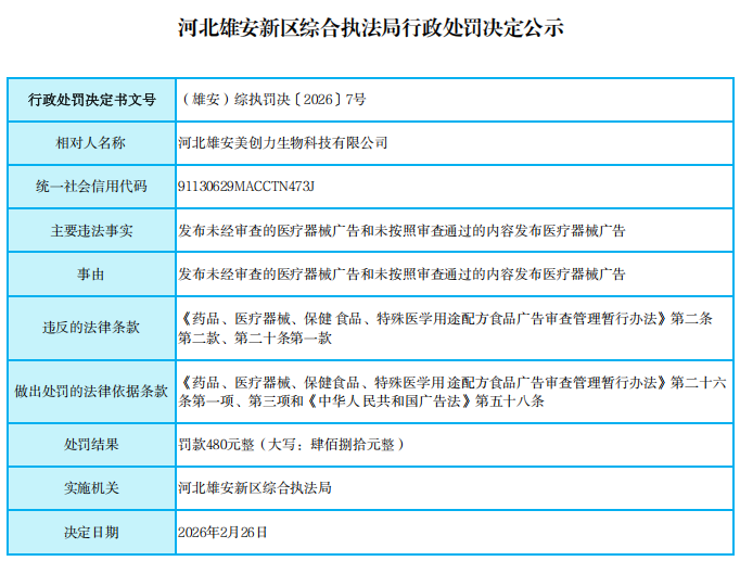 河北雄安新区综合执法局行政处罚决定公示