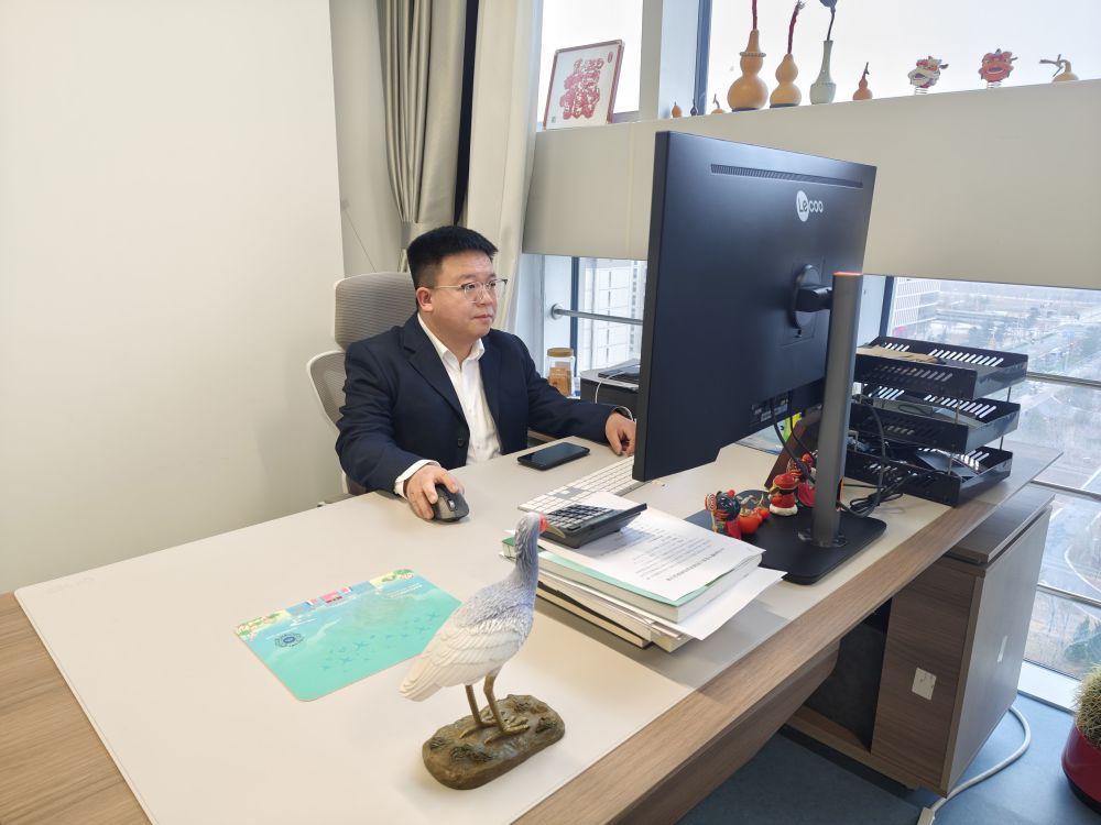 图为王芳军在办公室工作。新华社记者秦婧 摄