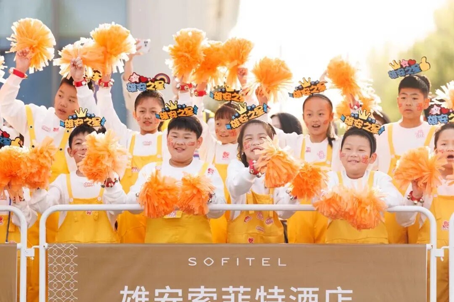 与雄安新区同龄的小使者组成加油团,在赛道沿线为跑者助威。中国雄安官网发
