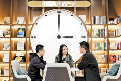 4月8日,中铁北京工程局集团雄安工程有限公司员工在办公楼下咪咕咖啡休闲放松。记者刘光昱 摄