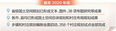 从日前召开的全省自然资源工作会议上获悉,全省国土空间规划编制顺利推进,截至2020年底,省级国土空间规划已形成文本、图件、38项专题研究等成果,各市、县均已形成国土空间总体规划和村庄布局规划成果,乡镇和村庄规划编制全面启动,358个村庄规划试点全部完成。