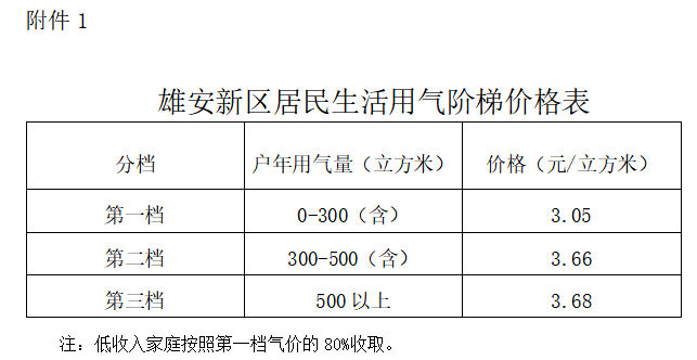(二)阶梯价格。第二档(年用气量300-500立方米以内)价格调整为3.66元/立方米,第三档(年用气量500立方米以上)价格调整为3.68元/立方米。具体见附件1。