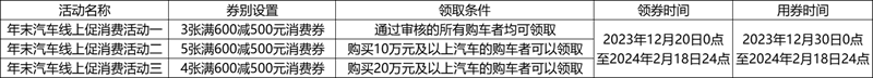消费券发放时间:2023年12月20日0点至2024年2月18日24点。