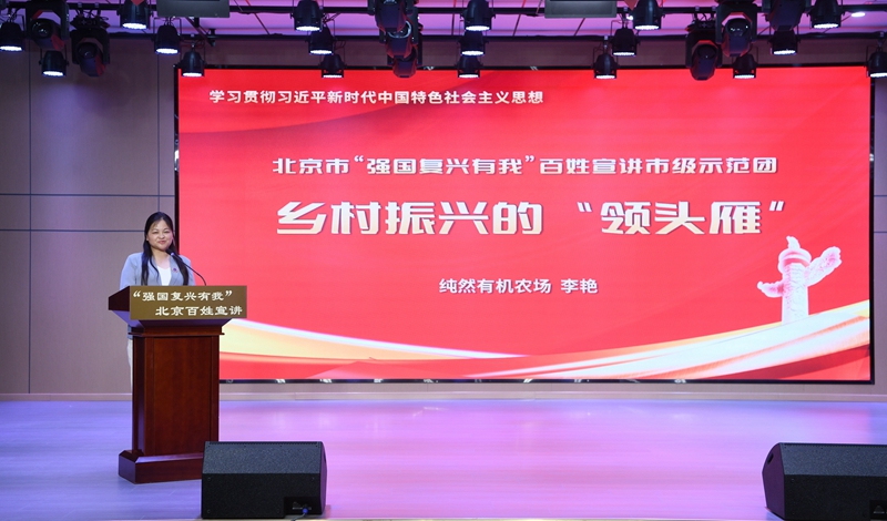 探索有机蔬菜种植,南菜北种,带动农户增收的农场主李艳进行宣讲。杨亚文 摄