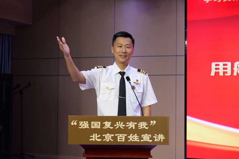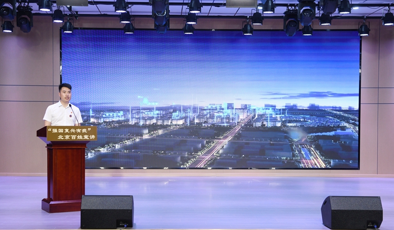 学飞行、搞航拍,用手中相机记录北京城市副中心新发展的通州区融媒体记者常鸣进行宣讲。雄安新区宣传网信局供图