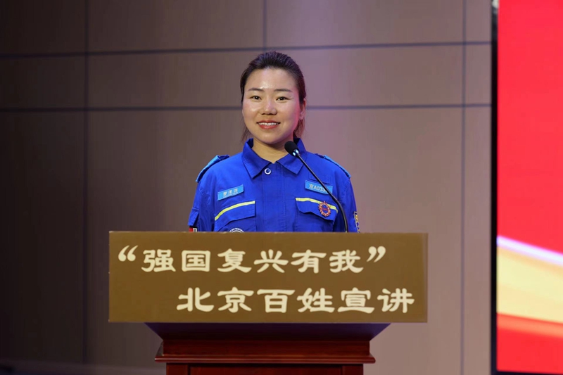 为守护一方平安,无数次与火灾进行殊死搏斗的北京市昌平区消防救援支队副科长汤昊进行宣讲。中国雄安官网牛思佳 摄