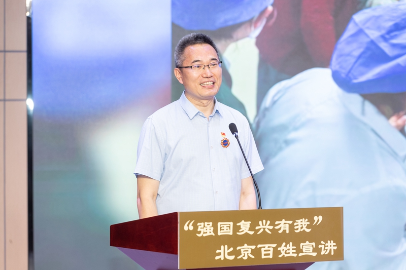 为早产儿患者生命安全保驾护航的首都儿科研究所麻醉科主任潘守东进行宣讲。中国雄安官网牛思佳 摄