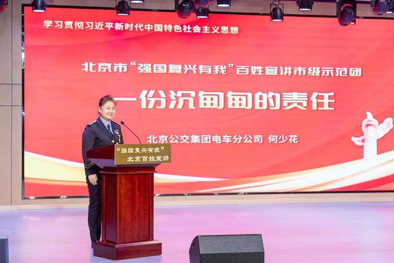 自学方言、手语,用爱温暖匆匆赶路人的全国人大代表、北京公交集团电车分公司驾驶员何少花进行宣讲。中国雄安官网牛思佳 摄