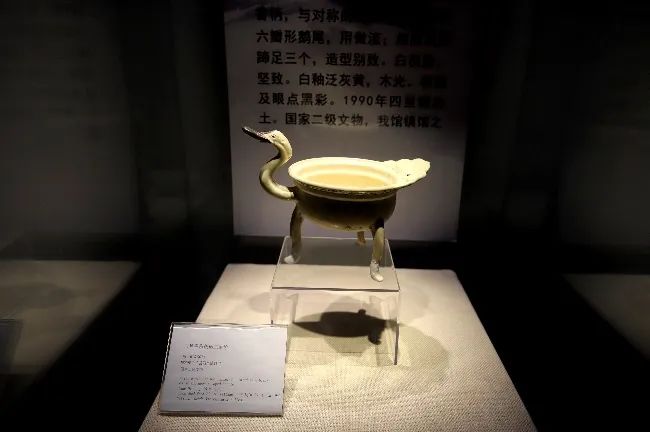 最后一件是白釉黑彩鹅柄三足炉,鹅的头、颈、尾及三足均为模具制成,手工粘贴于炉身,烧制精美,造型特别传神。