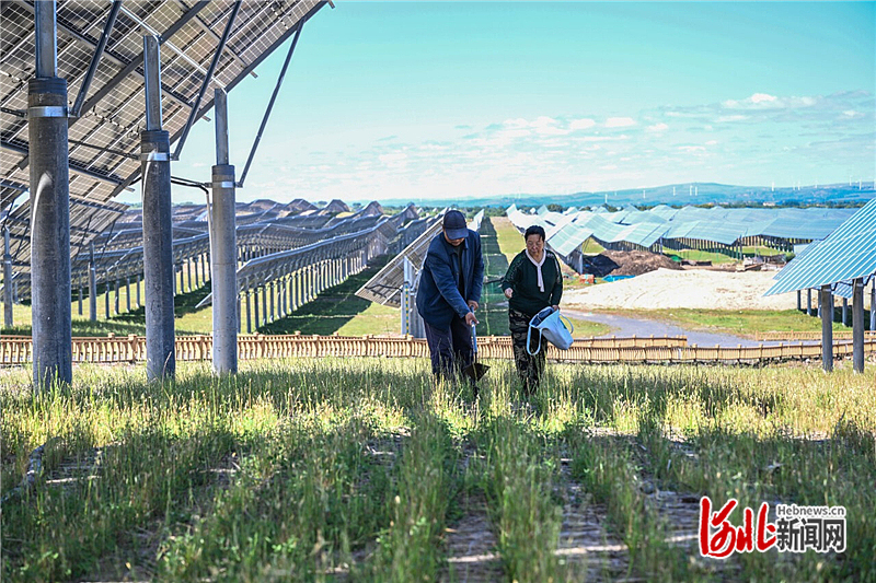 9月5日,三复兴地村村民正在“七彩河”光伏电站内补植牧草。河北日报记者田明 摄