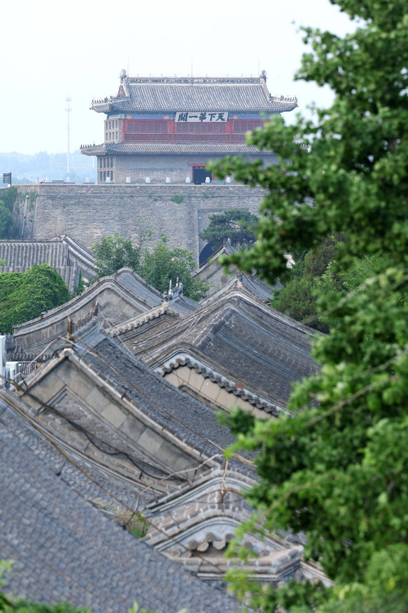 6月11日在山海关古城中的钟鼓楼上拍摄的天下第一关城楼。新华社发(梁子栋摄)