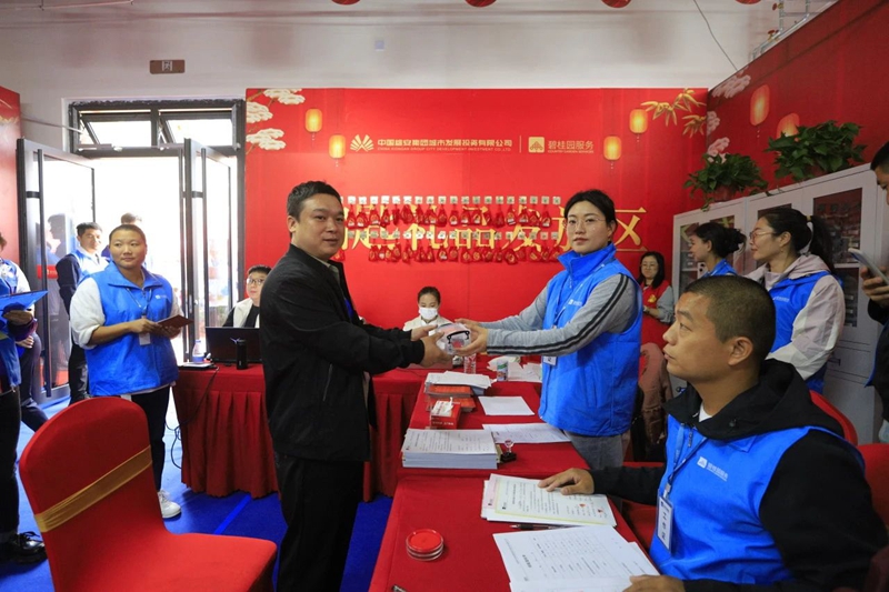 据介绍,雄东片区此前已顺利开展了两批次回迁验房工作,获得了广大居民的高度认可与支持。为了确保此次验房交付工作的顺利进行,雄东片区内设置了1个接驳区和8个回迁交付点,各交付点分别设置签到区、签约区、缴费区、钥匙礼品发放区等功能区,以方便居民有序办理各项手续。同时,昝岗管委会联合雄县县直有关部门及雄安集团城发公司精心组织了包括项目管理、总承包、物业服务等单位在内的多方力量,持续优化工作流程,并合理配置了验房师、工程技术人员、房屋维修保养人员、现场志愿者以及相应数量的工作人员,组成了一支由1548人组成的全方位服务团队,为居民提供全过程、全方位的验房、领钥匙及搬家入住服务保障。