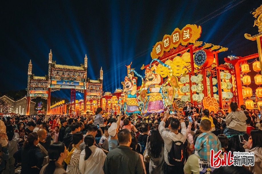 中秋假期,唐山丰南河头老街热闹非凡,卡通造型花灯和精彩演艺活动成为众多游客的打卡点。河头老街景区供图