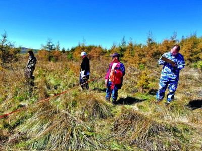塞罕坝林场工作人员现场进行碳汇林监测作业。