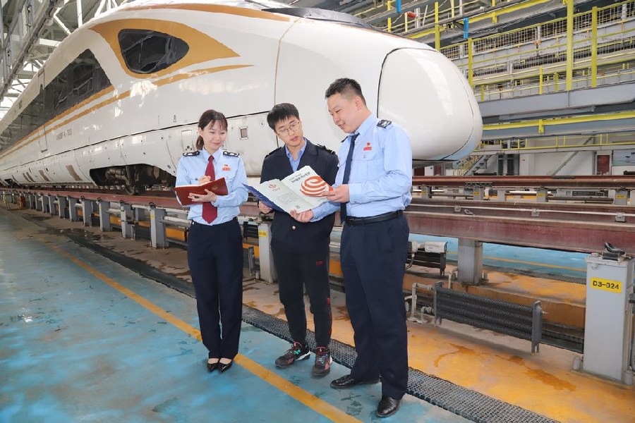 雄安新区雄县税务局税收宣传小分队到雄安动车运用所,了解企业涉税需求,并向企业财务人员讲解网上办税方法。雄县税务局供图(资料片)