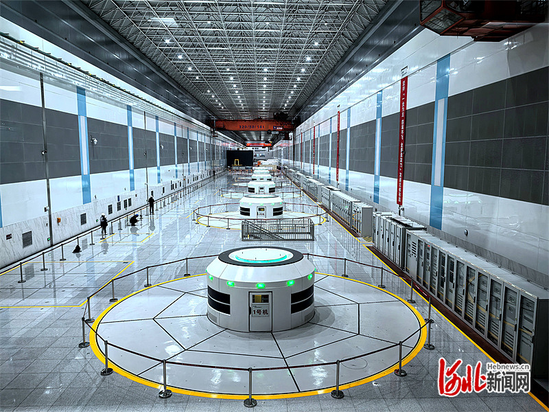 燕山深处、滦河之畔,10月23日,位于丰宁满族自治县四岔口乡永利村的国网新源河北丰宁抽水蓄能电站,地下厂房内多台机组高速运转,技术人员正在对最后一台变速机组进行紧张调试,为接下来的迎峰度冬做准备。
