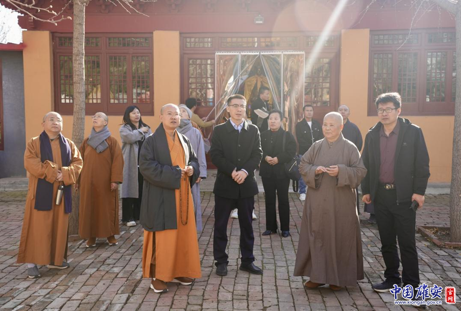 参加活动人员先后前往容城县楞严寺、雄县大佛禅寺、安新县灵觉寺参观考察,实地了解寺院规范化建设情况。当天下午,宗教活动场所建设交流座谈会在安新县召开。安新县民宗局负责人介绍了宗教工作经验,大佛禅寺、楞严寺、灵觉寺负责人分别就寺庙规范建设经验进行交流发言。