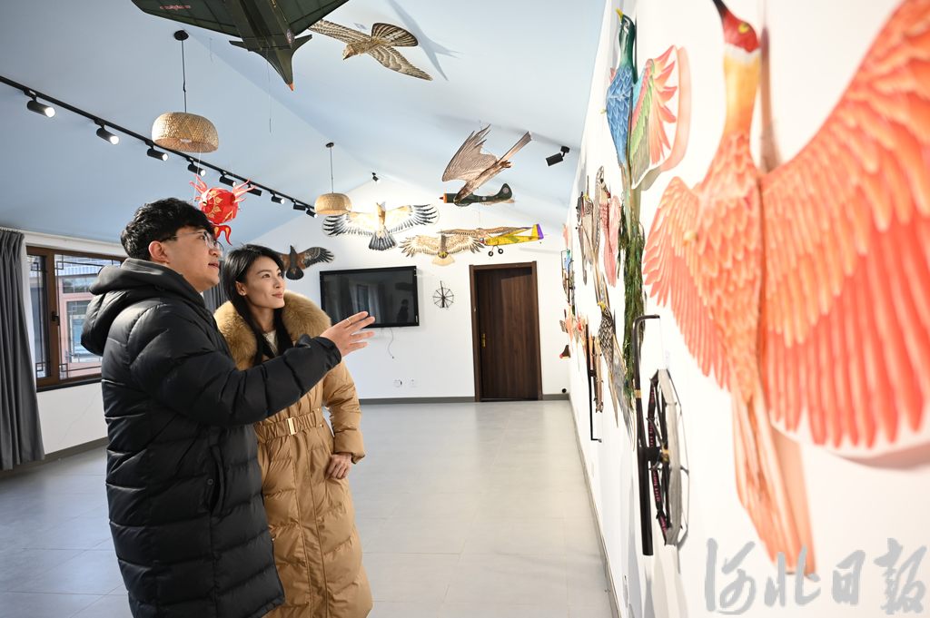 12月6日,游客在蔚县“京西·无忧小镇”内的盘鹰风筝文创展厅参观。河北日报记者郭晓通 摄