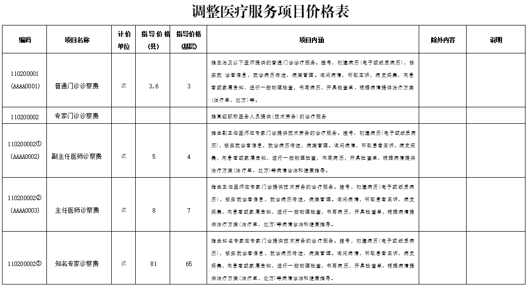二、调整县级及基层公立医疗机构普通门诊诊察费、副主任医师诊察费、主任医师诊察费等9项医疗服务项目价格(详见附件1)。对单纯购药及慢性病病人定期检查等不需要另外提供新的治疗方案的病人保留简易门诊,按每次1元收取。