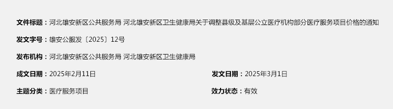 六、本通知自2025年3月1日起执行。如有此前文件与本通知不符的,以本通知为准。各有关部门在执行过程中如遇问题,请及时向雄安新区公共服务局、卫生健康局报告。