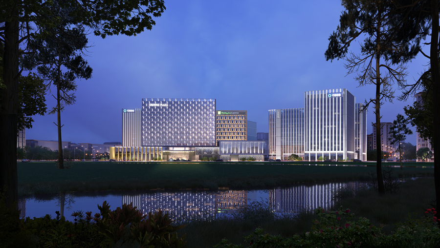 据项目负责人介绍,中绿·新时代广场项目总占地面积22万平方米,未来将建设洲际酒店集团旗下的皇冠假日酒店、智选假日酒店以及甲级写字楼。其中,写字楼将积极打造“共享互联”的办公生态,配备国际会议中心、宴会厅、职工食堂及健身中心,创新植入“共享办公空间”,为企业提供“工作-生活-社交”全维服务生态。