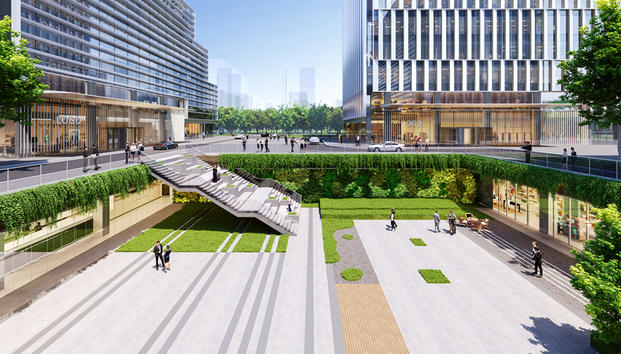 中绿·新时代广场局部效果图。中国绿发雄安公司供图