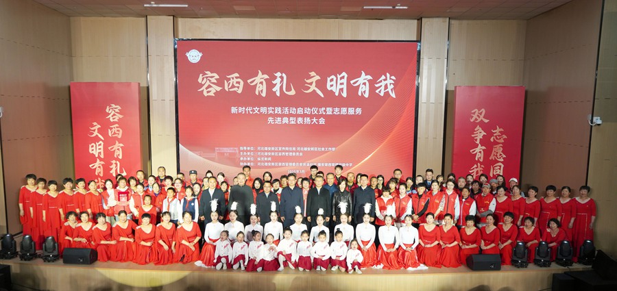 春意盎然,文明潮涌。3月26日上午,容西片区“容西有礼 文明有我”新时代文明实践活动启动仪式暨志愿服务先进典型表扬大会在雄安容西容德初级中学报告厅举行。雄安新区宣传网信局、雄安新区社会工作部、容城县委宣传部、容西管委会各级领导,社区代表、志愿者及群众等300余人参加活动。