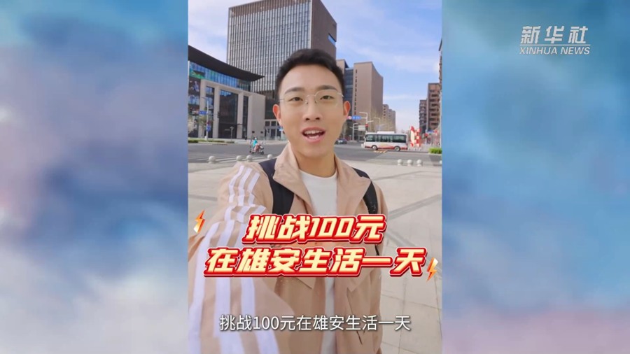 在河北雄安新区,年轻小伙孙恺泽作为城市体验官正通过直播向网友展示“挑战100元在雄安生活一天”。