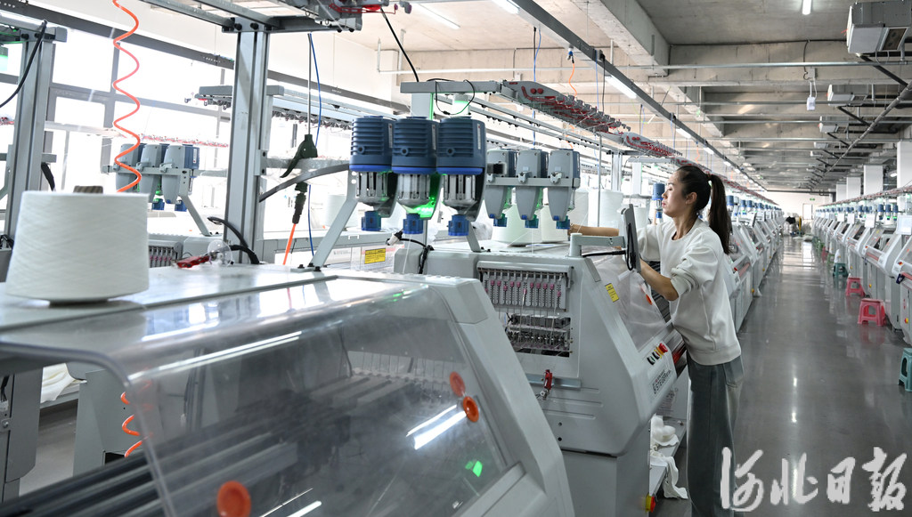 1月17日,在清河县新华·慈星羊绒针织数字化工厂,工人利用全自动电脑针织横机生产羊绒服饰。(河北日报资料片)