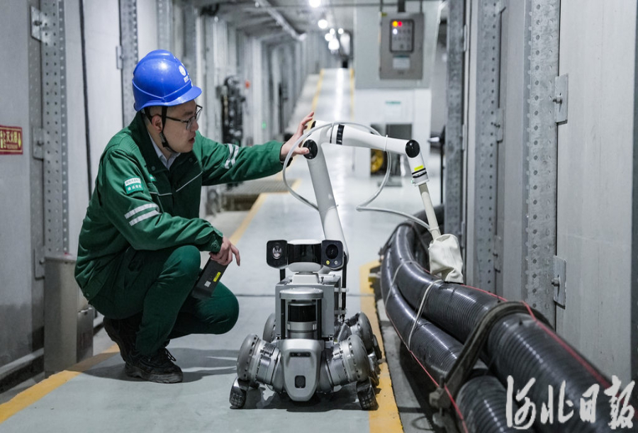 4月2日,雄电灵犀智巡机器人正在雄安新区雄东电缆隧道第54分区内进行局部放电检测。河北日报记者李畅 摄