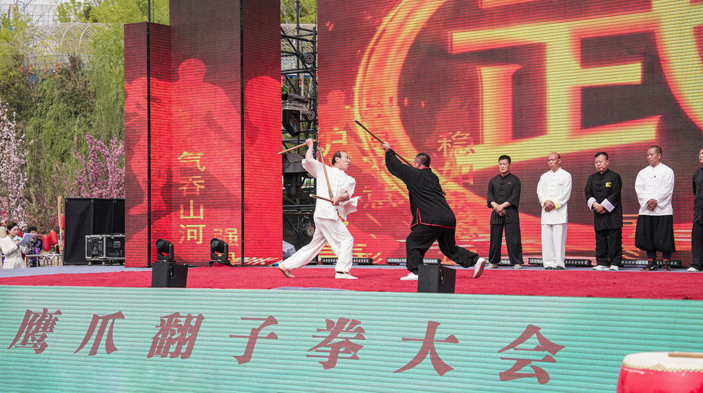 4月8日,在鹰爪翻子拳大会现场,全国13位武术名家联袂登台进行表演。河北日报客户端记者李畅 摄